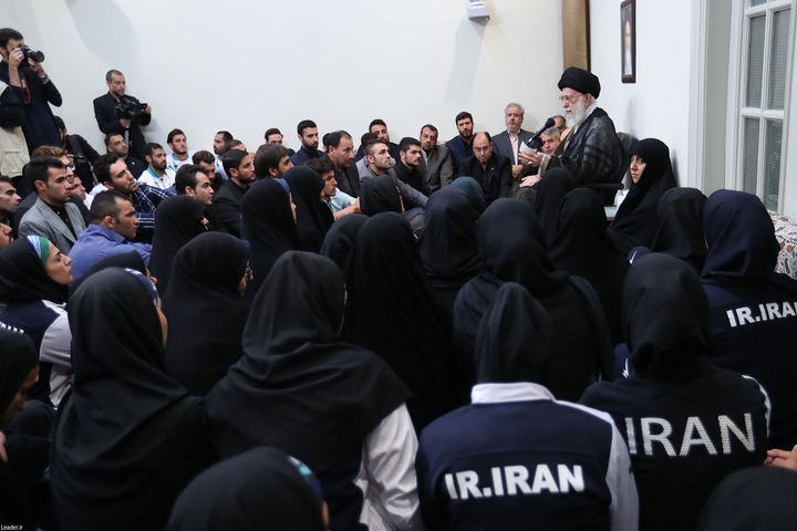 Referring to frequent efforts by the enemies to obscure important achievements made by the Iranian nation, in various arenas, Ayatollah Khamenei held: “Of course, your prideful victory before the eyes of hundreds of millions of people around the world is undeniable, and this feature magnifies the value of your work.”