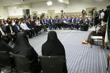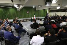 A hundred and fifteen medal winners of national and international scientific olympiads as well as members of the National Youth Volleyball team met with the Leader of the Islamic Revolution—Ayatollah Khamenei—this morning, Wednesday, August 7, 2019.