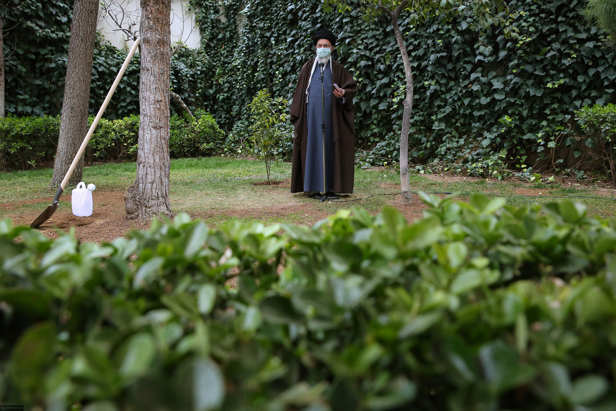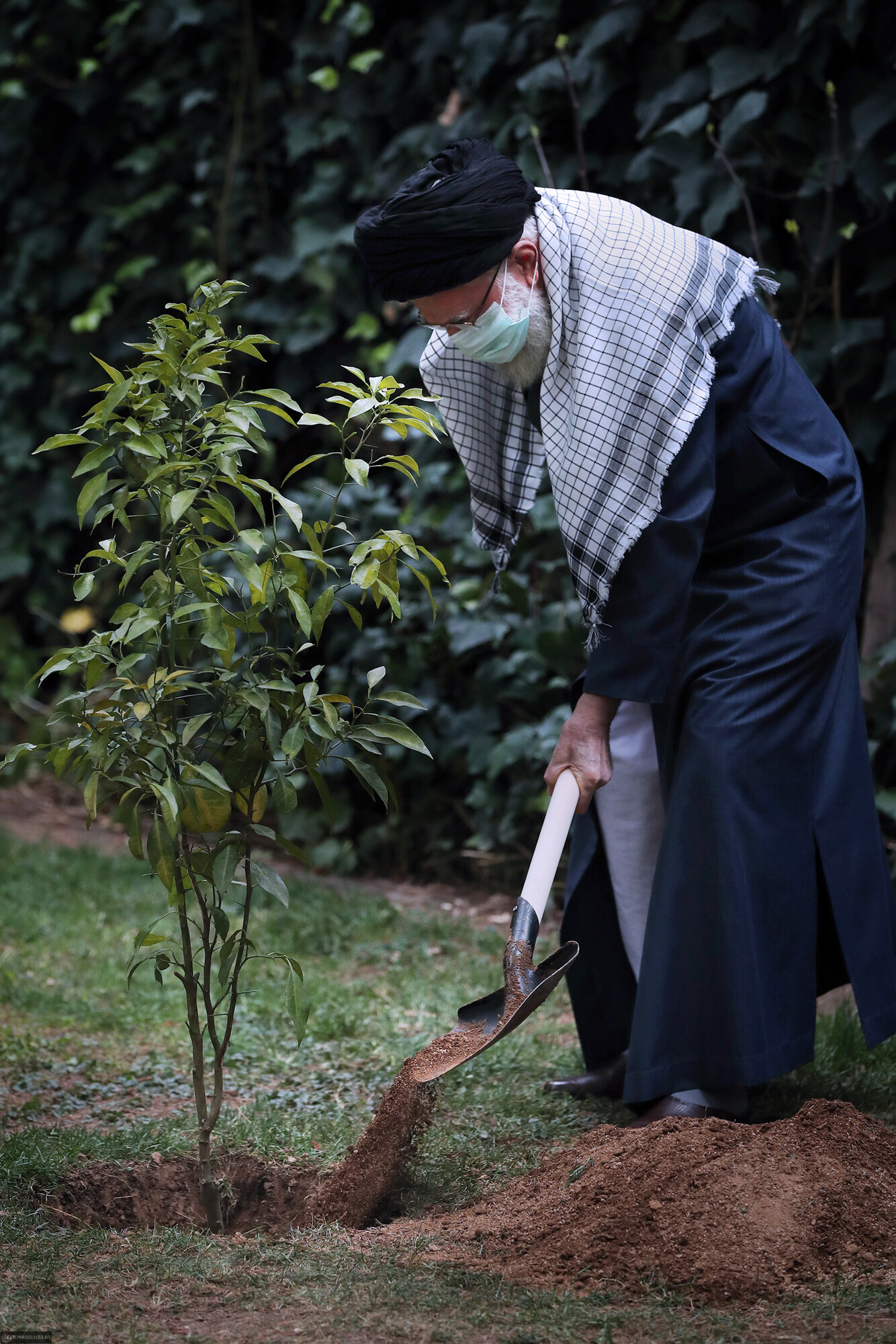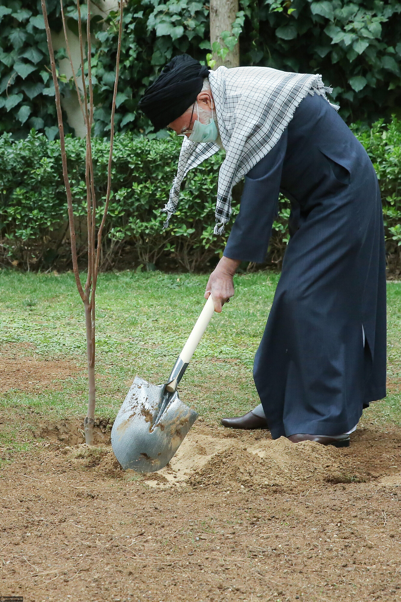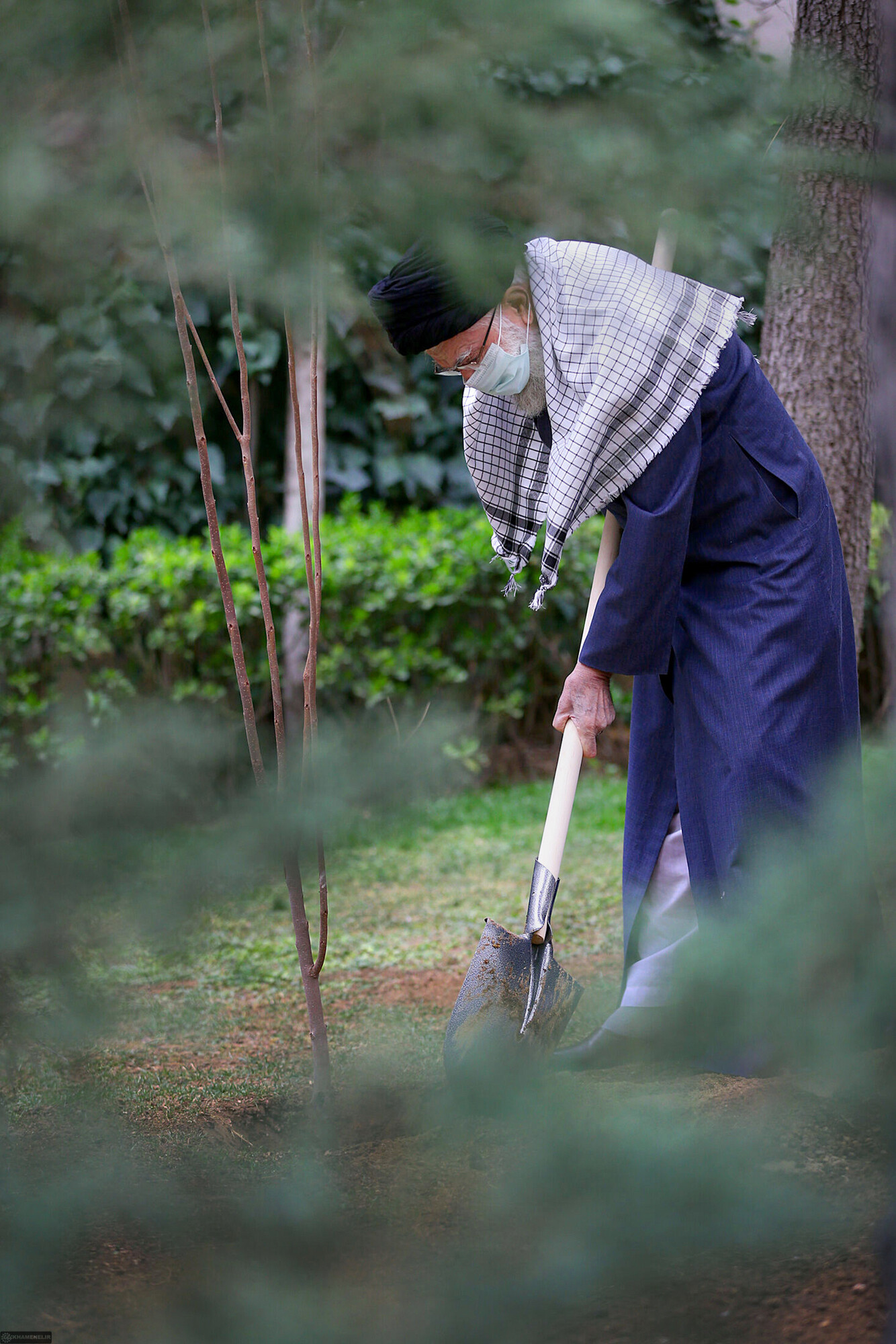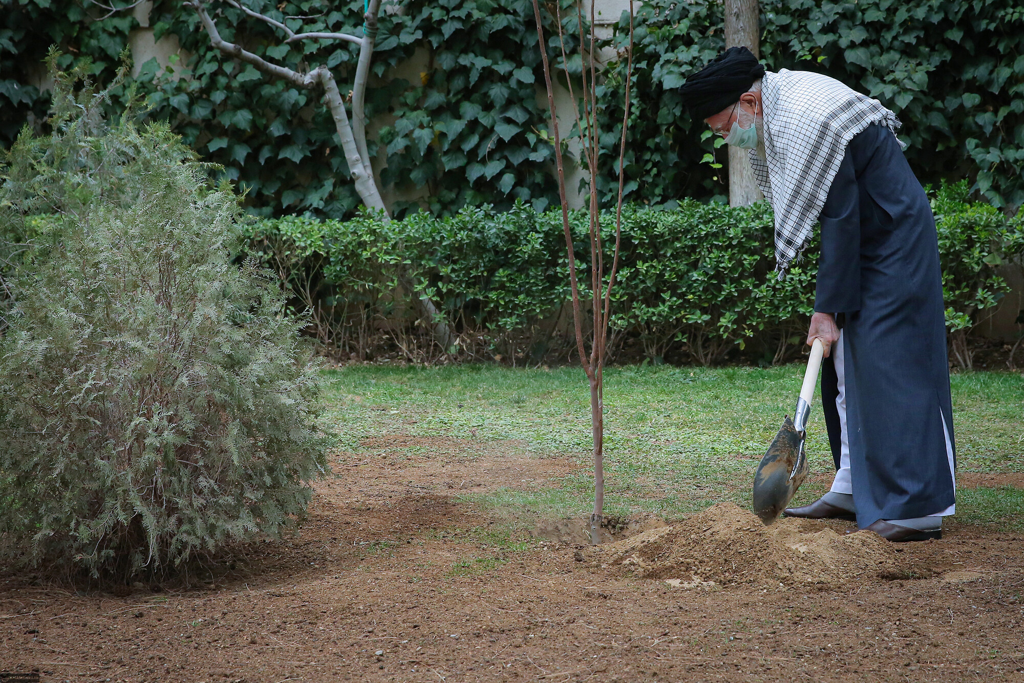 Imam Khamenei, the Leader of the Revolution, planted some saplings today on the occasion of the National Week of Natural Resources. March 5, 2021
