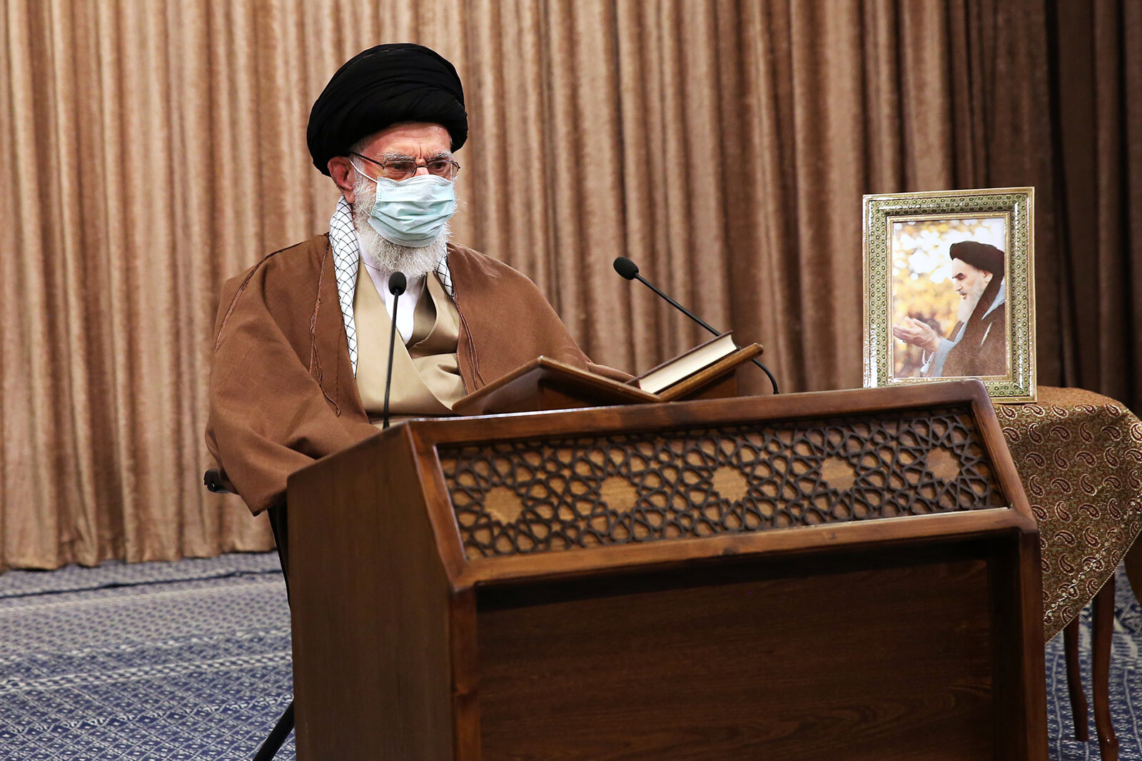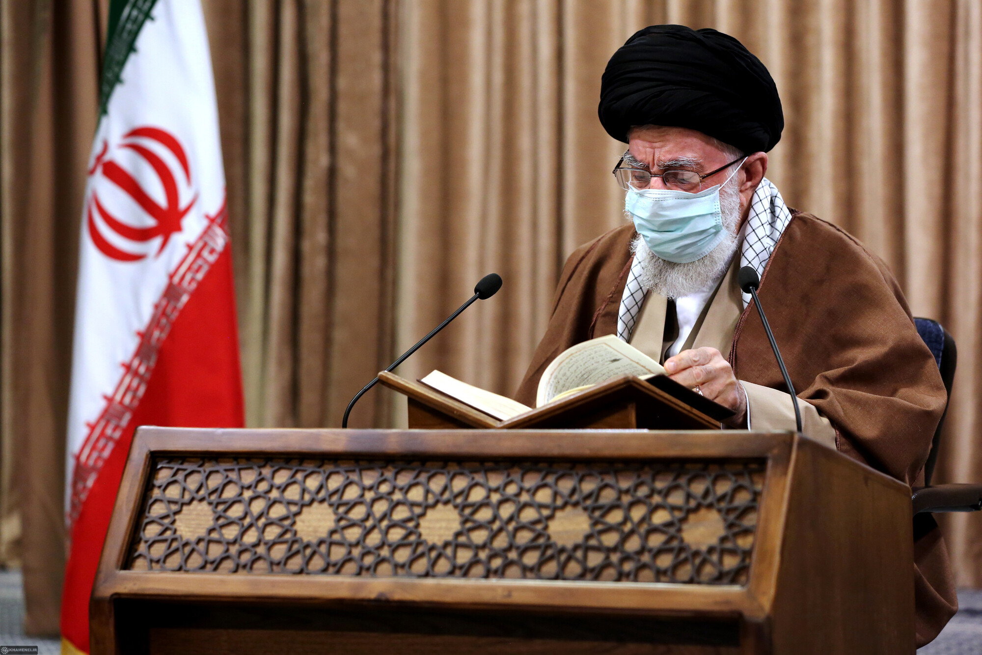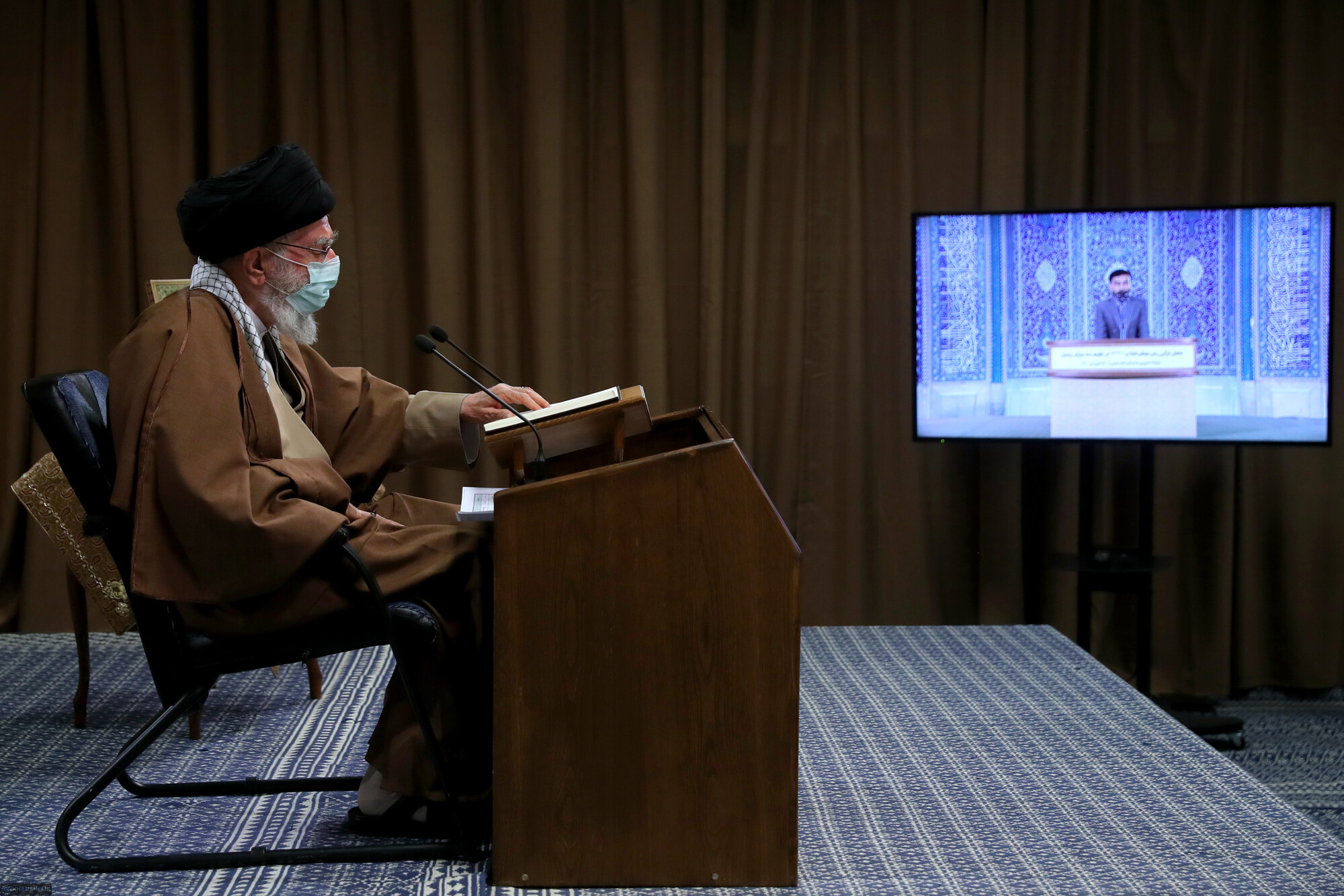 As is customary every year, the Qur’anic Recitation Ceremony, which is held on the first day of the month of Ramadan, was held in the presence of the Leader of the Revolution. It was broadcast live on radio and television channels as well as on the official social media accounts of KHAMENEI.IR. Due to the health guidelines issued by the National Committee on Combating Coronavirus, which restrict public gatherings, this ceremony was held by way of the videoconference with a number of outstanding reciters of the Holy Qur’an in attendance in the Imam Khomeini Musallah.