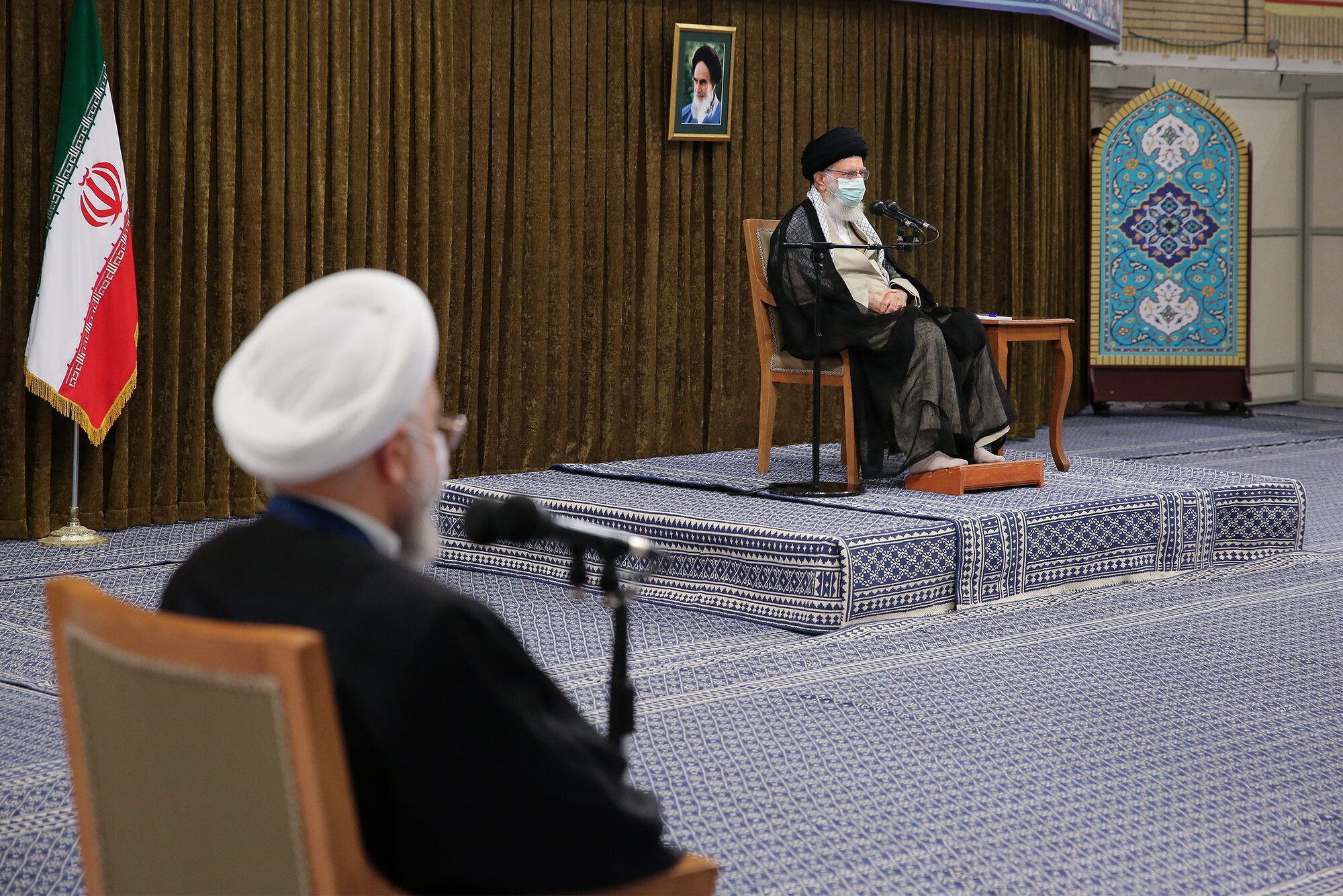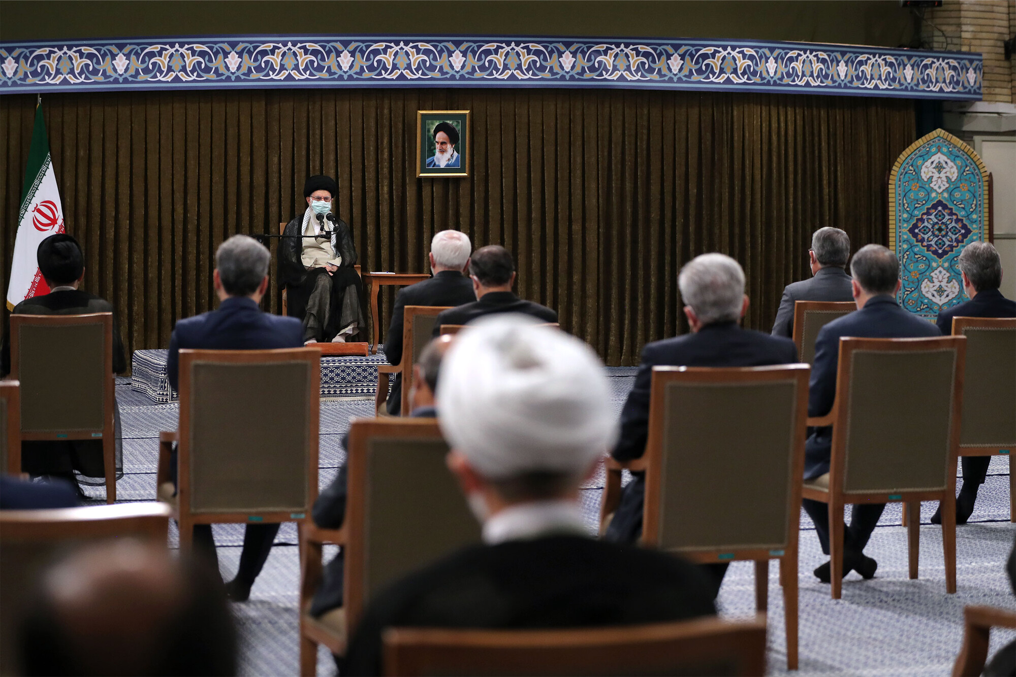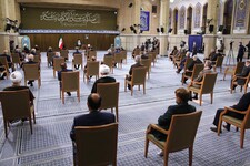 Imam Khamenei met with President Rouhani and the members of the 12th Cabinet this Wednesday morning, July 28th, in the Imam Khomeini Hussainiyah.